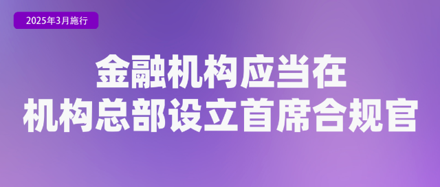 国家金融监督管理总局发布的《金融机构合规管理办法》,自2025年3月1日起施行。办法明确了金融机构合规管理架构、合规文化培育、董事会及高级管理人员的职责等事项。要求金融机构应当在机构总部设立首席合规官,原则上应当在省级分支机构或者一级分支机构设立合规官。