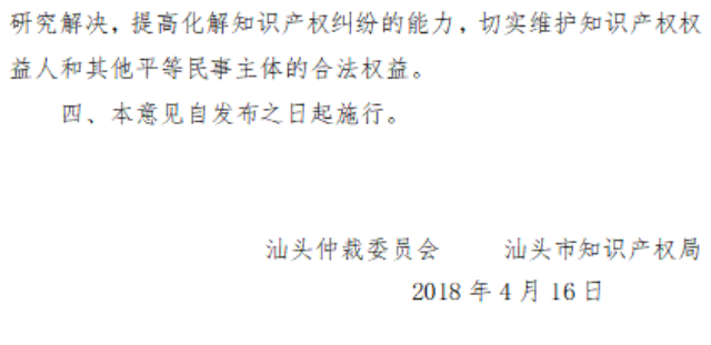 关于建立知识产权纠纷仲裁调解协作机制的实施意见 汕仲〔2018〕7号