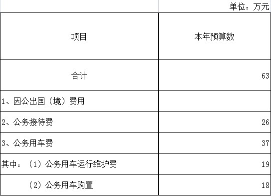 • 注:按照党中央、国务院有关文件及部门预算管理有关规定,“三公经费”包括因公出国(境)费、公务用车购置及运行费和公务接待费。(1)因公出国(境)费,指单位工作人员公务出国(境)的住宿费、旅费、伙食补助费、杂费、培训费等支出。(2)公务用车购置及运行费,指单位公务用车购置费用及租用费、燃料费、维修费、过路过桥费、保险费、安全奖励费用等支出,公务用车指用于履行公务的机动车辆,包括领导干部专车、一般公务用车和执法执勤用车。(3)公务接待费,指单位按规定开支的各类公务接待(含外宾接待)支出。