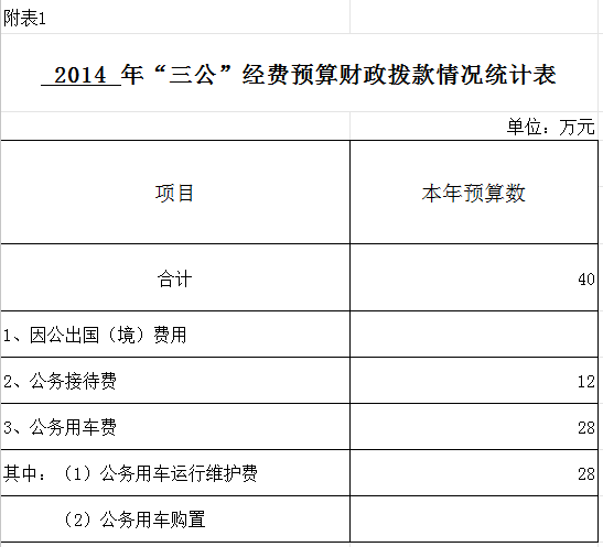 注:按照党中央、国务院有关文件及部门预算管理有关规定,“三公经费”包括因公出国(境)费、公务用车购置及运行费和公务接待费。(1)因公出国(境)费,指单位工作人员公务出国(境)的住宿费、旅费、伙食补助费、杂费、培训费等支出。(2)公务用车购置及运行费,指单位公务用车购置费用及租用费、燃料费、维修费、过路过桥费、保险费、安全奖励费用等支出,公务用车指用于履行公务的机动车辆,包括领导干部专车、一般公务用车和执法执勤用车。(3)公务接待费,指单位按规定开支的各类公务接待(含外宾接待)支出。