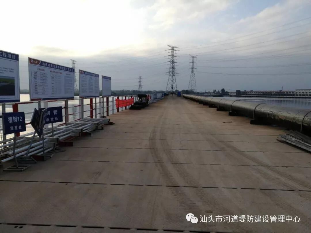 汕头市海门湾桥闸重建工程临时交通便桥的合龙,翻开了项目推进的新篇章,下阶段的施工任务依然十分艰巨,各参建单位将在市水务局的坚强领导下,闻鸡起舞,日夜兼程,全力推进工程建设,为打赢练江流域水环境综合整治攻坚战争做奉献。