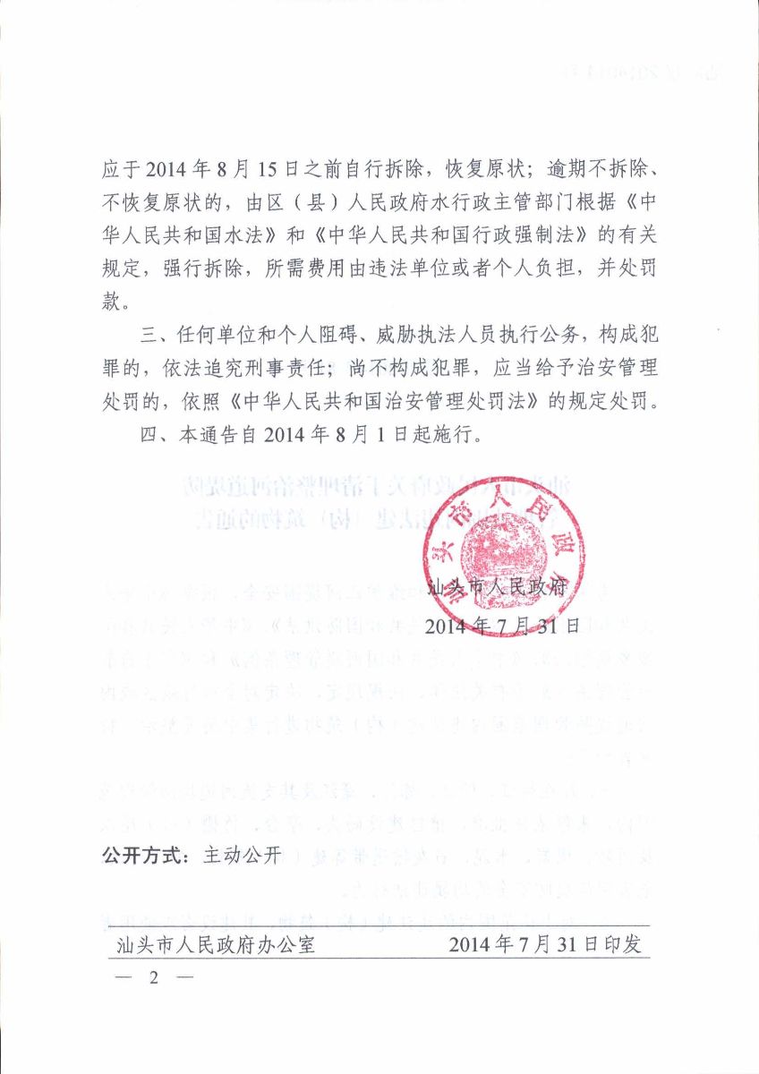 汕头市人民政府关于清理整治河道堤防管理范围内违法建(构)筑物的通告