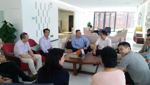 考察团一行首先到中海信(汕头)创新产业城参观厂房,并与濠江区副区长郭耀宇、区工信局、招商服务局负责人、中海信负责人座谈交流,深入了解园区最新的开发建设情况、入驻条件以及配套设施情况。