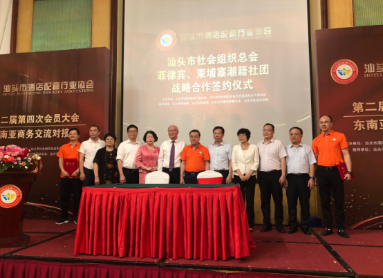 东南亚商务交流对接会以“牵线搭桥——让本地企业走出去,让东南亚企业走进来”为目标,吸引了泰国潮州会馆、马来西亚工商总会、柬埔寨潮人联谊会、菲律宾青年总会等海外潮人社团和加拿大温哥华的侨商、侨领,以及市酒店配套行业协会的会员代表近80余人参会。会上,泰国、马来西亚等8位国内外商界代表上台进行企业或产品的推介交流,汕头市社会组织总会与菲律宾、柬埔寨潮籍社团举行了战略合作签约仪式。