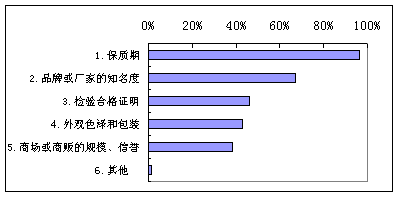 近期传媒报道假奶粉、假粉丝以及假白酒等事件,引起市民关注,对食品安全防范意识进一步加强,市民购买食品时,通常会关注食品的保质期、品牌、检验证明、外观色泽、商贩信誉等。