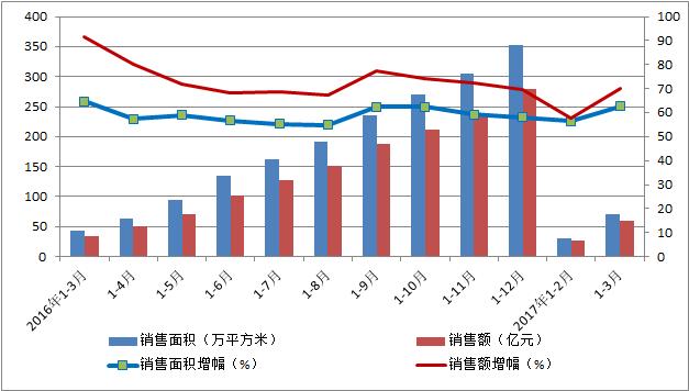 2017年一季度,汕头市房地产开发投资稳步增长,房屋新开工面积和竣工面积大幅提升,商品房销售持续走高,开发企业资金到位良好,商品房待售面积总量不断攀升。