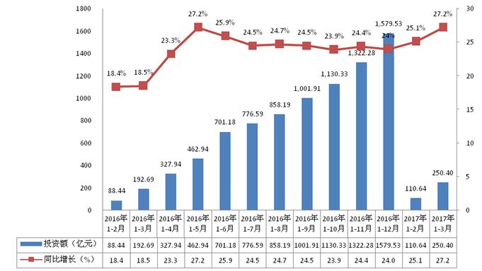 2017年以来,我市固定资产投资延续去年发展态势,保持高位运行,民间投资、工业投资等主要领域指标均明显提速,带动全市投资实现良好开局。一季度,全市完成固定资产投资250.40亿元,同比增长27.2%,比去年全年提高8.7个百分点,增速在全省二十一个地级市中居第二位,高于全省14.7个百分点,其中:项目投资199.87亿元,同比增长32.2%;房地产开发投资50.53亿元,同比增长21.7%。
