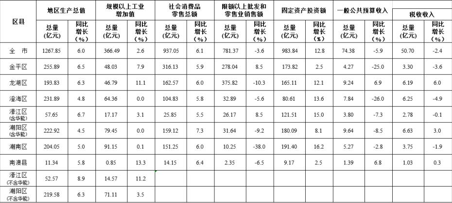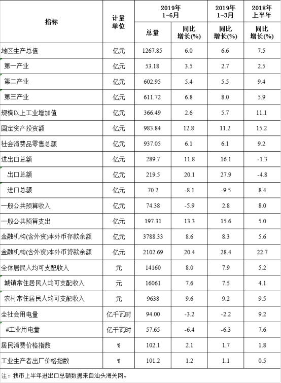 经省核定,上半年全市实现地区生产总值1267.85亿元,同比增长6.0%,增速在全省各市排第10位。增速排位在汕头之前的9个城市,其中6个是珠三角地区发达城市,3个是粤东西北地区城市,其经济总量均不足汕头的一半。分产业看,第一产业增加值53.18亿元,增长3.5%;第二产业增加值602.95亿元,增长5.4%;第三产业增加值611.72亿元,增长6.8%。三次产业结构调整为4.2:47.6:48.2,服务业比重比上年同期提高0.8个百分点,经济结构持续优化。从供给侧、需求侧和积极因素看,三大支撑点有力拉动经济在合理区间运行。