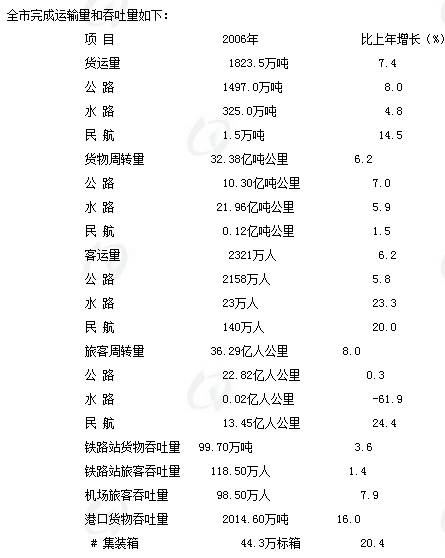 城市建设取得新进展,城市环境进一步改善。2006年,全市市政建设完成固定资产投资5.98亿元,市区建成区面积166.15平方公里。加快中心城区主干道路的配套改造建设步伐,新扩建道路面积30万平方米,年末实有道路长度1288.48公里;下水道排水管长度1588公里,城区排水能力进一步增强。城市管理运行整体功能与综合素质进一步巩固提高,中心城区日供水能力131.20万立方米,年供水总量24397万立方米;居民家庭用气普及率97.1%,天然气环保能源使用逐步推广。全市电网发购电量96.86亿千瓦时,增长11.0%。公共交通事业继续发展,年末市区出租汽车1586辆,公交线路60条,客运量8651万人次;运营船只7艘,轮渡客运量466万人次。
