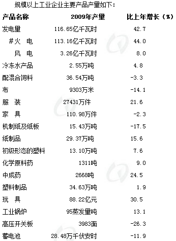 全年完成工业增加值530.85亿元,比上年增长10.6%,占地区生产总值的比重由上年的51.1%上升为51.3%,工业对经济增长贡献率达到50.8%。完成工业总产值2241.16亿元,增长11.1%。其中,规模以上工业总产值1533.66亿元,增长14.1%;规模以上工业产值占全部工业总产值68.4%,比上年提高4个百分点。在规模以上工业总产值中,国有及国有控股企业增长7.0%、集体企业增长16.2%、股份制企业增长16.5%、外商及港澳台商投资企业增长7.6%;轻、重工业中轻工业产值占规模以上总产值比重继续提高。规模以上工业实现销售产值1472.99亿元,增长14.3%;完成出口交货值259.70亿元,下降8.6%;工业产品销售率96.04%,比上年提高0.13个百分点。高新技术产品产值403亿元,增长18.5%。新增中国驰名商标3件,省著名商标27件,省名牌产品18个,省出口名牌61个;获“中国文具生产基地”称号。全市工业用电量72.69亿千瓦时,增长7.6%。