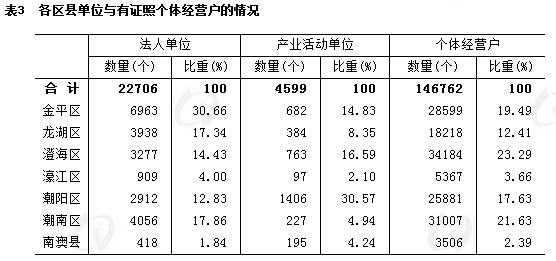 全市第二、三产业单位区县分布情况如下。(详见表3)