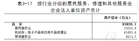 2013年末,居民服务、修理和其他服务业企业法人单位资产总计9.39亿元,比2008年末增长175.4%(详见表3-17)。