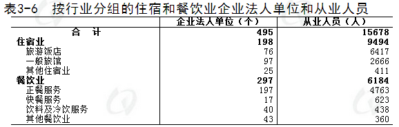 2013年末,全市共有住宿和餐饮业企业法人单位495个,从业人员15678人,分别比2008年末增长30.3%和下降1.0%。