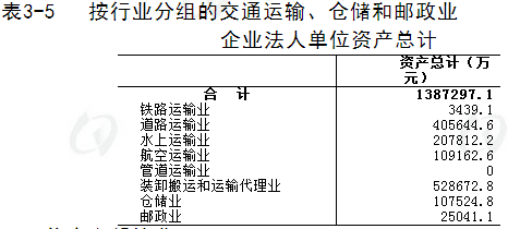 2013年末,交通运输、仓储和邮政业企业法人单位资产总计138.73亿元,比2008年末增长51.5%(详见表3-5)。