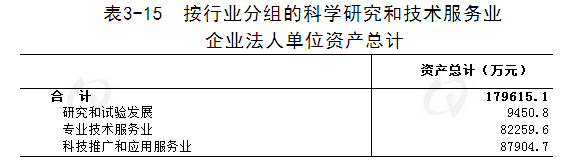 2013年末,科学研究和技术服务业企业法人单位资产总计17.96亿元,比2008年末增长253.5%(详见表3-15)。