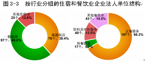 在住宿和餐饮业企业法人单位中,住宿业占40.0%,餐饮业占60.0%。在住宿和餐饮业企业法人单位从业人员中,住宿业占60.6%,餐饮业占39.4%(详见表3-6)。