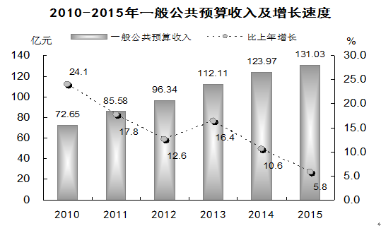 全市完成一般公共预算收入131.03亿元,比上年增长5.8%;一般公共预算支出279.66亿元,增长34.3%。
