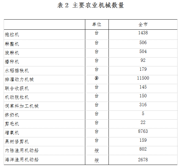 2016年末,我市拖拉机1438台,耕整机506台,旋耕机504台,联合收获机145台,播种机92台,排灌动力机械11500套。