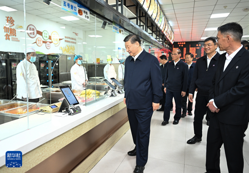 (6月18日至19日,中共中央总书记、国家主席、中央军委主席习近平在青海考察。这是18日下午,习近平在果洛西宁民族中学食堂察看学生就餐条件。新华社记者 谢环驰 摄)