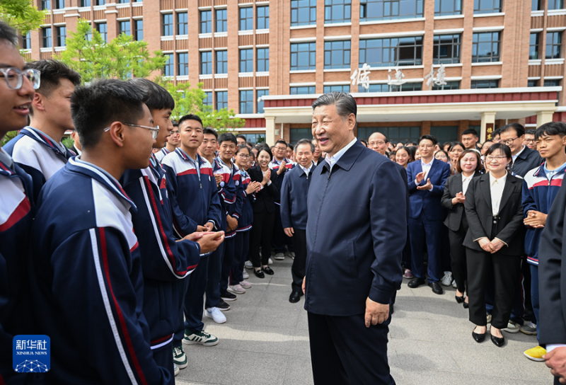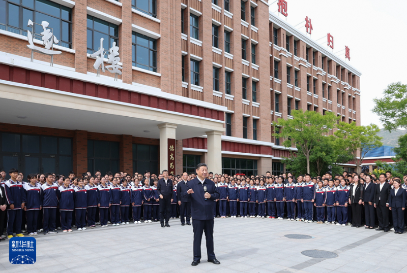 (6月18日至19日,中共中央总书记、国家主席、中央军委主席习近平在青海考察。这是18日下午,习近平在果洛西宁民族中学考察时,同师生们亲切交流。新华社记者 鞠鹏 摄)