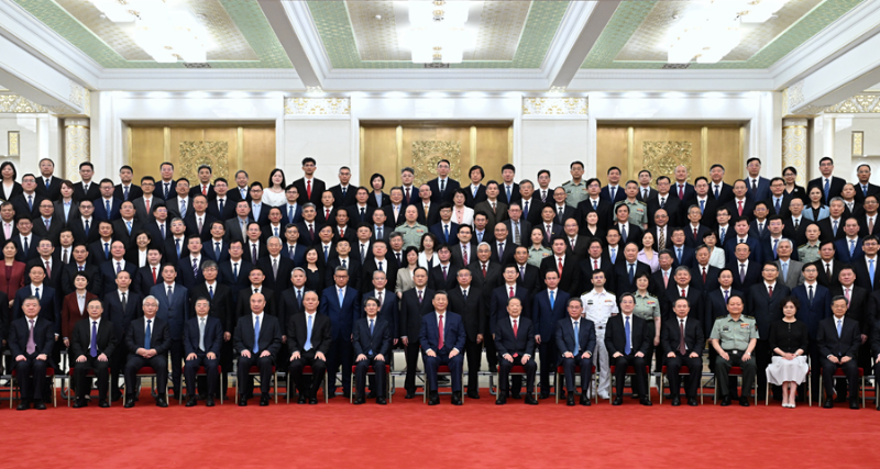 (6月24日,全国科技大会、国家科学技术奖励大会和中国科学院第二十一次院士大会、中国工程院第十七次院士大会在北京人民大会堂隆重召开。会前,习近平等领导同志亲切会见国家科学技术奖获奖代表,并同大家合影留念。新华社记者 谢环驰 摄)