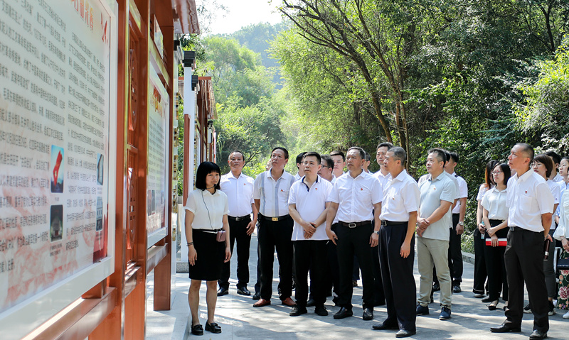 在革命烈士陵园宣教长廊,全体党员干部认真观看每幅图片的简介和内容,仔细聆听讲解员述说的潮汕地区老一辈无产阶级革命家艰苦奋斗历程。从中共汕头特别支部首任书记杨石魂烈士,到汕头建立农民自卫军独立营的县委书记张秉刚;从狙击日寇进攻战斗中牺牲的烈士,到新中国海军史上影响深远的八六海战;一大批中国共产党人为了党的事业献出自己年轻生命,老一辈无产阶级革命家为了争取民族独立和人民幸福,不惜抛头颅、洒热血,赴汤蹈火、舍生取义,用他们宝贵的生命和青春的热血,书写了一段段荡气回肠、大义凛然、勇往直前、可歌可泣的潮汕革命史,使党员干部心灵上接受了一次“红色精神”教育洗礼。