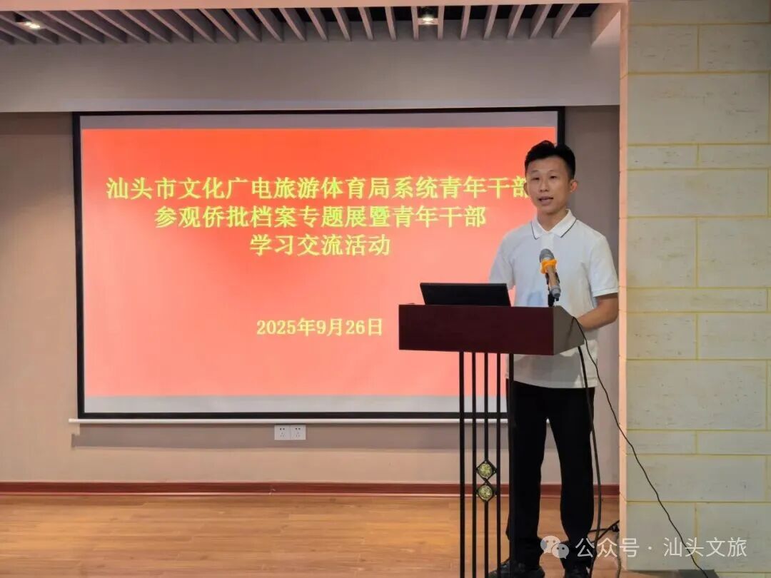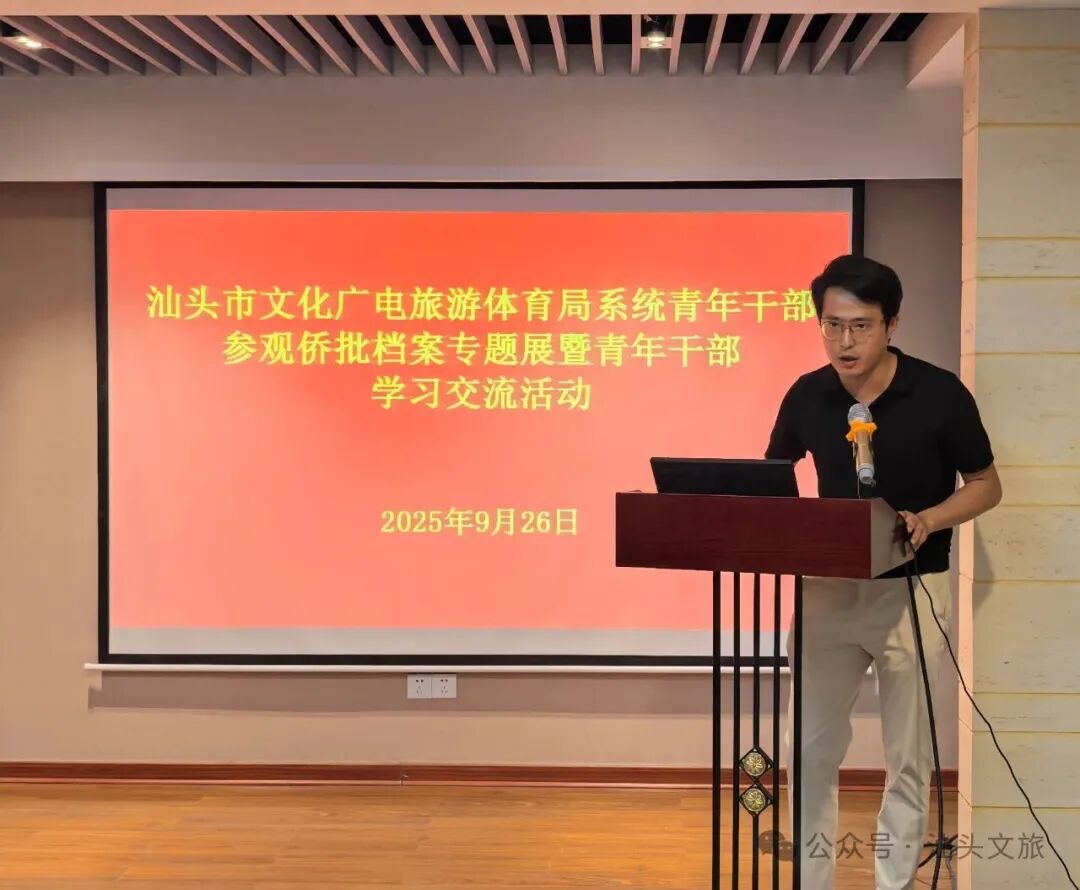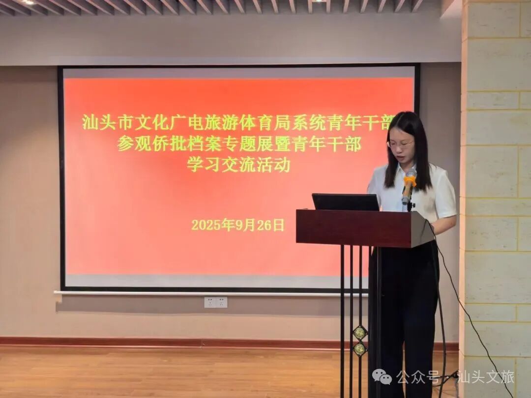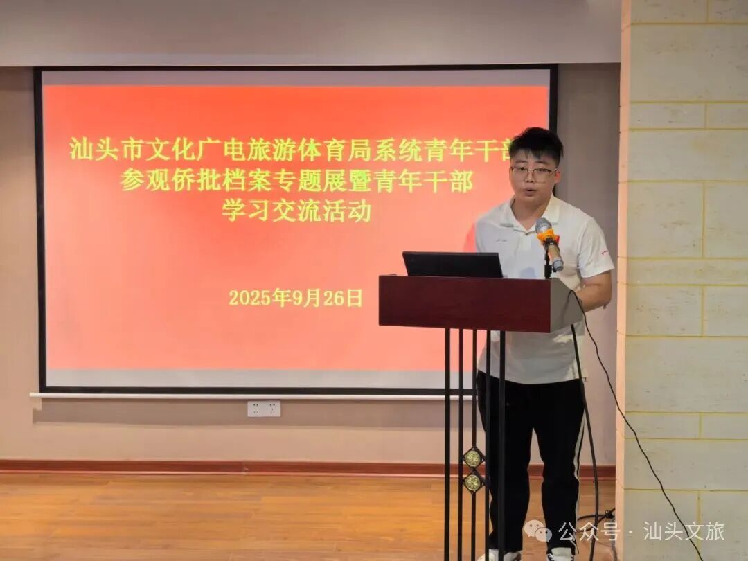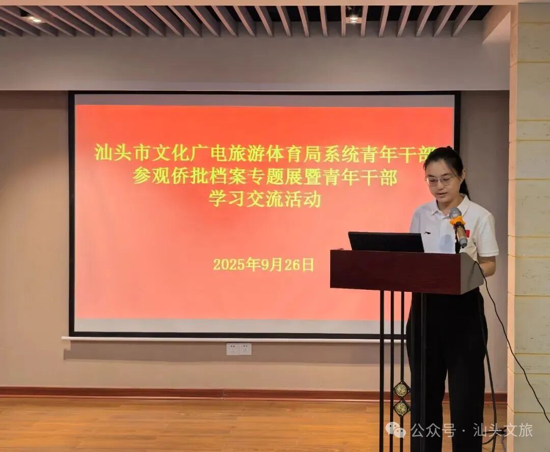 为缅怀革命先烈,传承爱国精神,深刻感悟侨胞在抗战时期的历史贡献,9月26日上午,市文化广电旅游体育局组织青年干部到市博物馆参观“烽火侨批家国情”纪念中国人民抗日战争暨世界反法西斯战争胜利80周年侨批档案专题展,并举办青年干部学习交流活动。局党组成员、副局长潘丽辉同志参加座谈交流,局下属各单位主要负责人及分管人事工作的领导、局机关及下属各单位近五年新入职的青年干部参加活动。