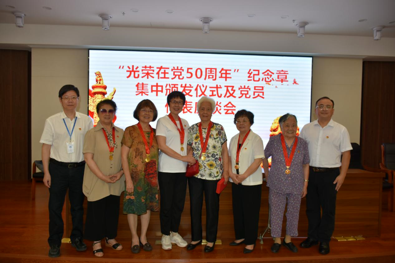 宣誓活动结束后,紧接在医院会议室召开“光荣在党50年”纪念章集中颁发仪式及党员代表座谈会。包括94岁的陈国华老人在内的6位老党员代表被授予“光荣在党50年”纪念章。“虽然我们已是退休了,人老了,但岁月更坚定了我们听党的话,永远跟党走”,老党员黄碧珠道出了在场老党员的共同心声。会议还宣读了市委卫生健康工委优秀共产党员、优秀党务工作者及先进基层党组织表彰决定。