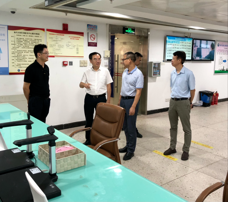 黄煜生首先到三楼综合厅前台受理区察看了解我局办事窗口相关办事流程和群众办事情况,随后到后台审批服务区看望我局驻市政务服务中心的同志,详细了解进驻事项、业务办理和日常考核等情况。