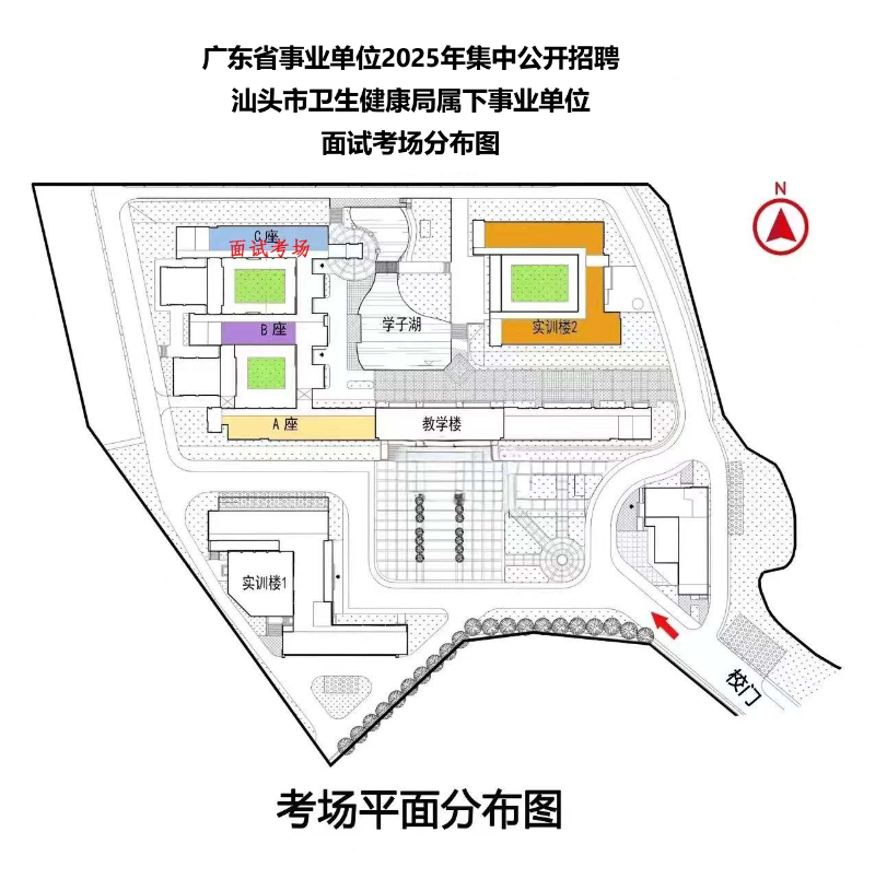 面试地点(考场)设在汕头市卫生学校,地址:汕头市金平区大学路叠金工业区鮀西路。面试考场平面分布图见附件1。