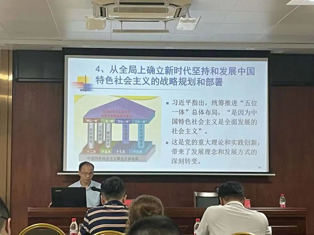 田慧武作了主题为《深入学习<习近平著作选读>第一卷、第二卷暨习近平总书记视察广东重要讲话精神》的宣讲,从“为什么要学《选读》;二是重点学《选读》什么;三是贯彻总书记视察讲话”等3个方面,对习近平新时代中国特色社会主义思想进行了全面、深入、系统的解读和阐释。