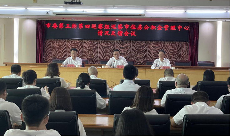 近期,市委第五轮第四巡察组向市住房公积金管理中心主要负责人和领导班子反馈巡察情况,反馈会议传达了市委书记温湛滨在市委书记专题会议听取十二届市委第五轮巡察工作情况汇报时的讲话精神,市纪委副书记、市监委副主任罗宁出席会议并对落实巡察整改提出要求,市委第五轮第四巡察组组长谢灿斌代表市委巡察组反馈了巡察情况,市住房公积金管理中心主任赖悦彬主持会议并就抓好巡察整改作表态发言。
