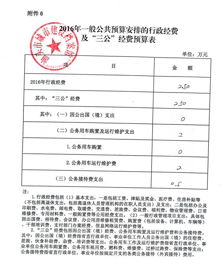 市城市建设档案馆2016年一般公共预算安排的行政经费及“三公”经费预算表